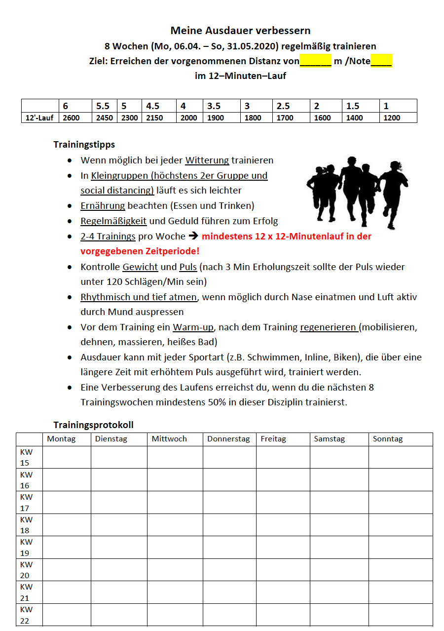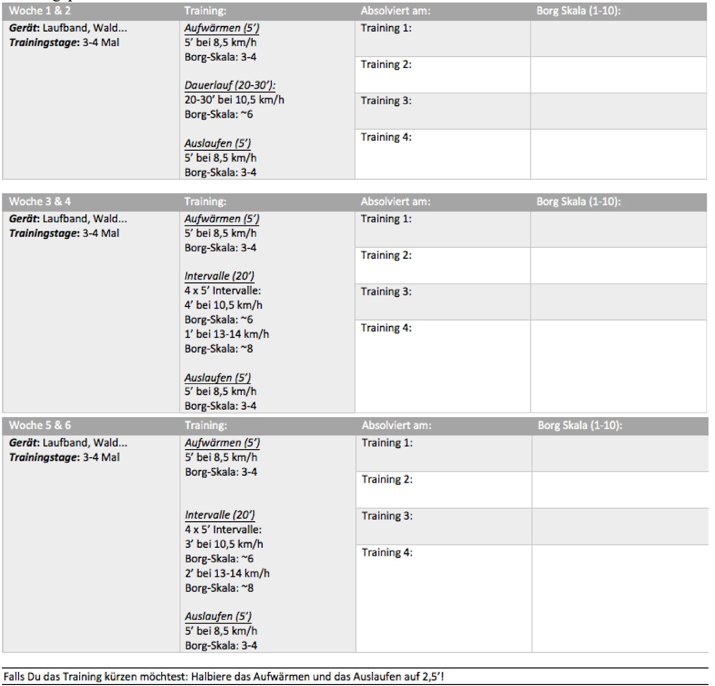 Hier findest du den Wochenplan mit den verschiedenen Workouts => Wochenplan